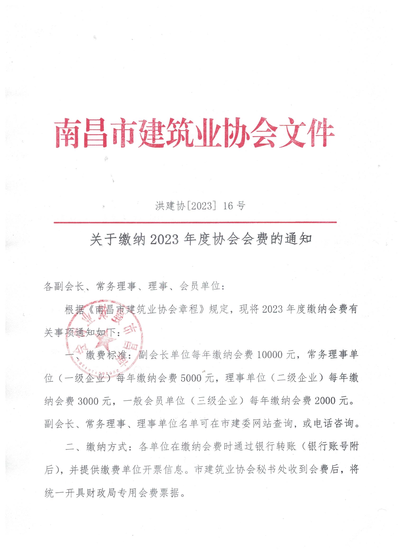 南昌市建筑業(yè)協(xié)會(huì)關(guān)于繳納2023年度協(xié)會(huì)會(huì)費(fèi)的通知