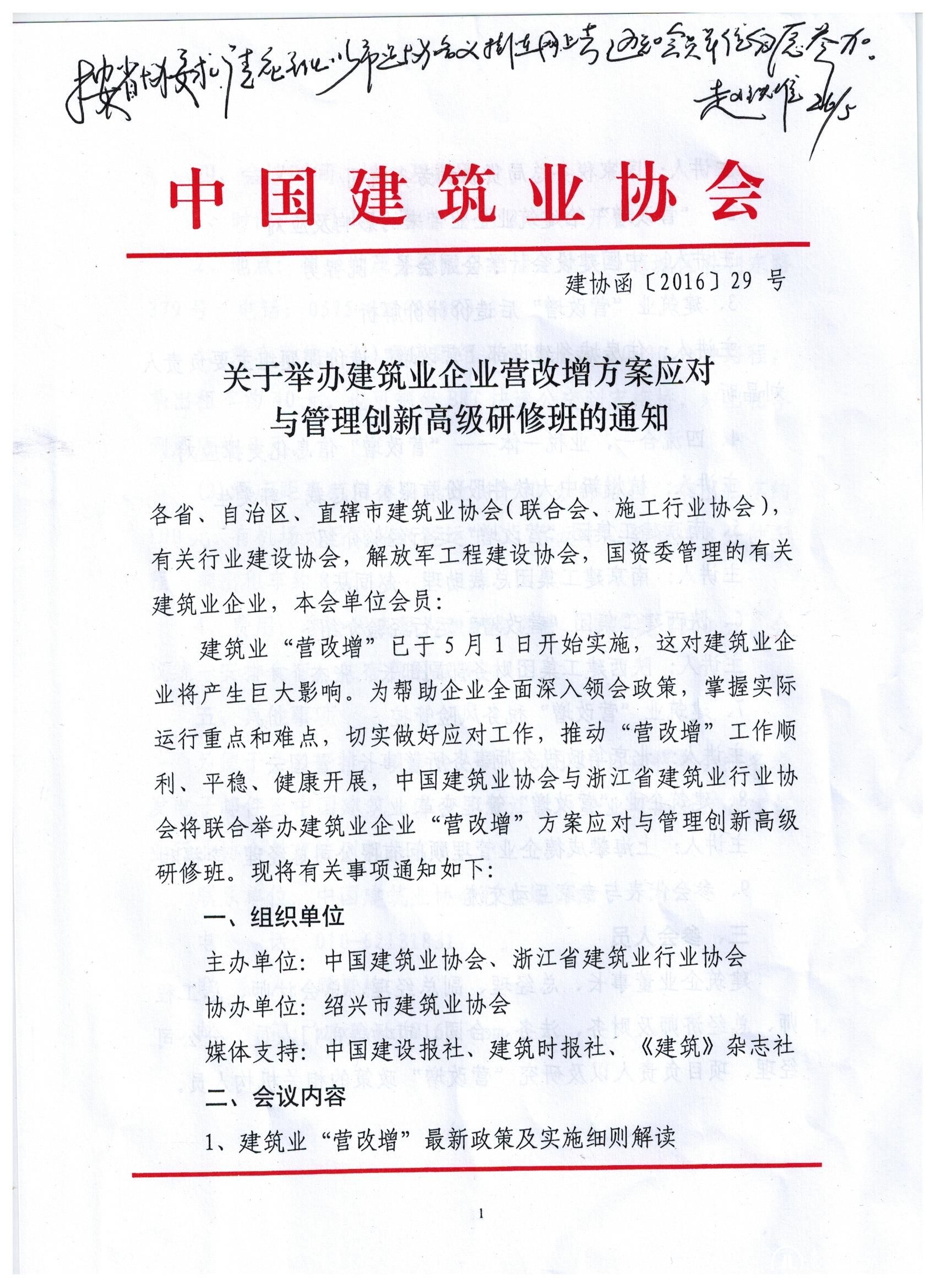 關(guān)于舉辦建筑業(yè)企業(yè)營改增方案應(yīng)對與管理創(chuàng)新高級研修班的通知